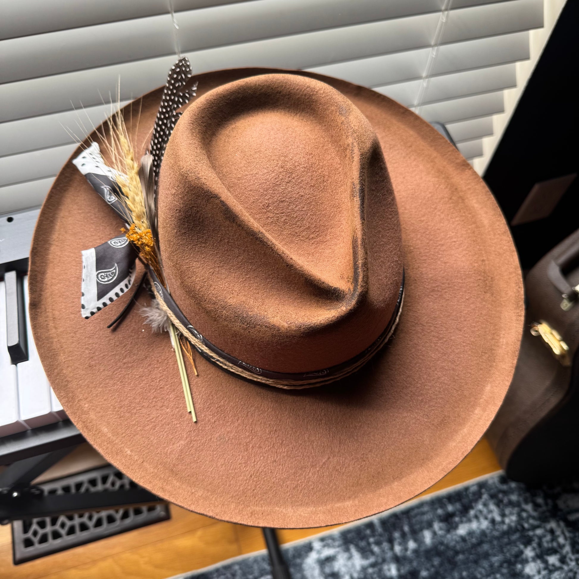 *CUSTOM HATS**Note: each hat is different; color, burns, aging, decor, etc may vary. Colors may appear brighter in photos. No refunds or exchanges.